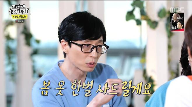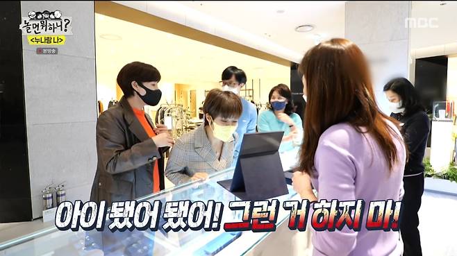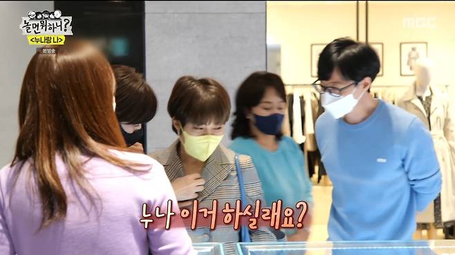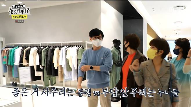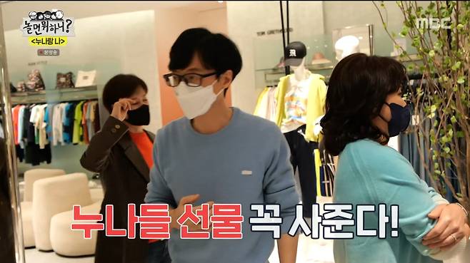끝없는 누나들의 토크에 유재석은 "누나들 봄 옷 한벌씩 해주겠다"며 쇼핑을 제안했다. 다이아몬드 등 쥬얼리를 보고 흥분한 누나들을 보며 웃던 유재석은 "예쁘다. 그거 사라"고 했지만, 누나들은 "아니다. 재석이 돈 아깝다"며 쉽사리 고르지 못했다. 이에 보다못한 유재석은 "내가 누나들한테 받은 게 얼만데"라며 직접 나서서 누나들의 옷을 골라주며 멋짐 폭발 동생美를 과시했다.