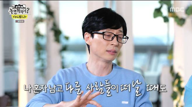 특히 유재석은 '해피투게더3'에서 먼저 하차했던 박미선을 떠올리며 "내가 혼자 남고 남들이 떠날 때도 내가 혼자 떠날때도 그렇지만, 누나가 떠나갔을 때 슬펐다. 기댈 곳이 없으니까"라고 속내를 털어놨다. 이에 박미선은 "내가 먼저 하차한게 마음에 걸렸어? 우리는 늘 있는 일이니까"라며 동생을 다독였다.