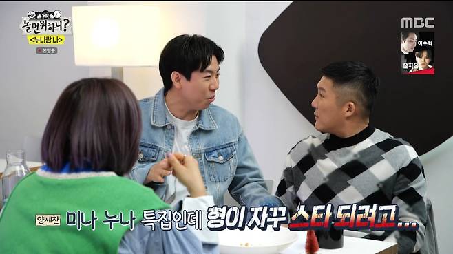 조세호는 "누나 기가 세잖냐. 연애를 하려면 주의해야 한다"고 조언했다. 하지만 그런 조언을 하기에는 조세호의 연애도 미묘했다. "내 마지막 연애는 상대방의 입장에 따라 다를 수 있다"고 밝혔기 때문. 신봉선이 귀여워지길 바라는 조세호와 달리 양세찬은 "지금 누나 스타일이 더 매력적"이라며 반대 의견을 드러냈다.