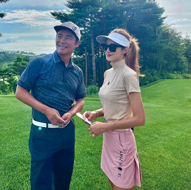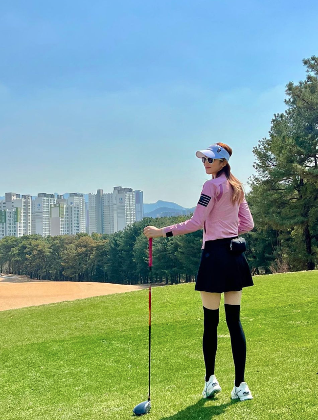 앞서 서하얀은 다양한 골프룩을 선보였다. 서하얀은 핑크색 점퍼에 검정색 하의를 매치했다.