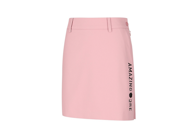 서하얀은 베이지색 상의에 핑크 치마를 매치한 골프룩을 선보였다.