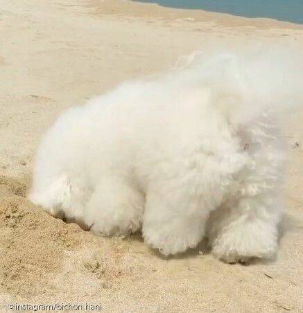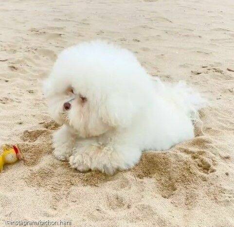 며칠 전 하니언니 님은 자신의 인스타그램 계정에 자신의 반려견 '하니'가 모래사장에서 노는 모습이 담긴 영상을 한 편 올렸다.
