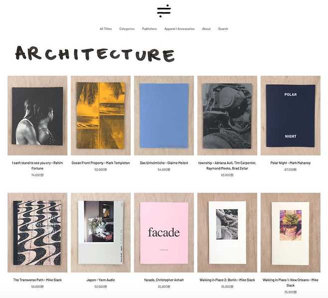 세계 곳곳에서 수집한 사진집을 큐레이팅해 선보인다. 사진집에 대해 잘 몰라도 괜찮다. 동물과 자연, 건축, 흑백 사진, 패션과 디자인, LGBTQ 등 주제별 카테고리가 잘 분류돼 있어 관심 분야에 따라 둘러보기 좋다. 특정 출판사를 찾는 이들이라면 ‘Publisher’ 탭을 눌러보고, 포토그래퍼 이름을 안다면 검색 기능을 활용해보자.