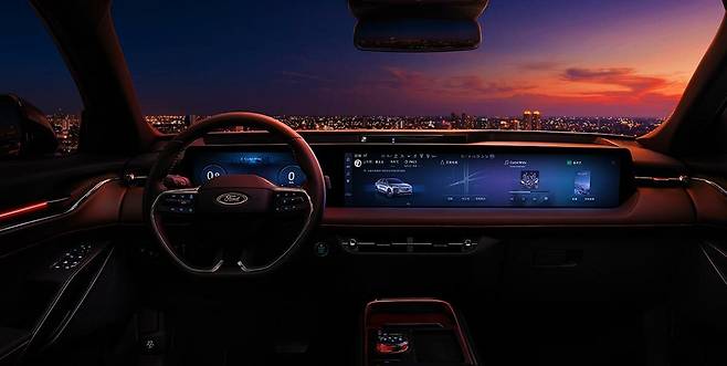 조수석까지 연결된 27인치 디스플레이 덕분에 운전자가 직접 조작할 필요 없이 내비게이션이나 차량 설정 등을 조수석 탑승자가 분담해 조작할 수 있다. 또, 조수석 부분만 구역을 따로 나눠 독립된 콘텐츠를 즐기는 것도 가능하다.