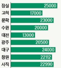 먼저, 구장마다 다른 좌석 수를 고려해야 한다. 최근 10년간 4개 구단이 새 구장으로 이사해 이제 1만 석 내외의 작은 1군 홈구장은 사라졌다. 하지만 대전구장과 고척돔 좌석은 여전히 1만 중반대다. 올해 기준으로 총 좌석 수가 가장 많은 잠실구장과 가장 적은 대전구장의 차이는 약 1만2000석이다. 높은 확률로 만원 관중을 기대할 수 있는 주말 경기의 경우 구장별 관중 동원력의 차이는 상당하다.