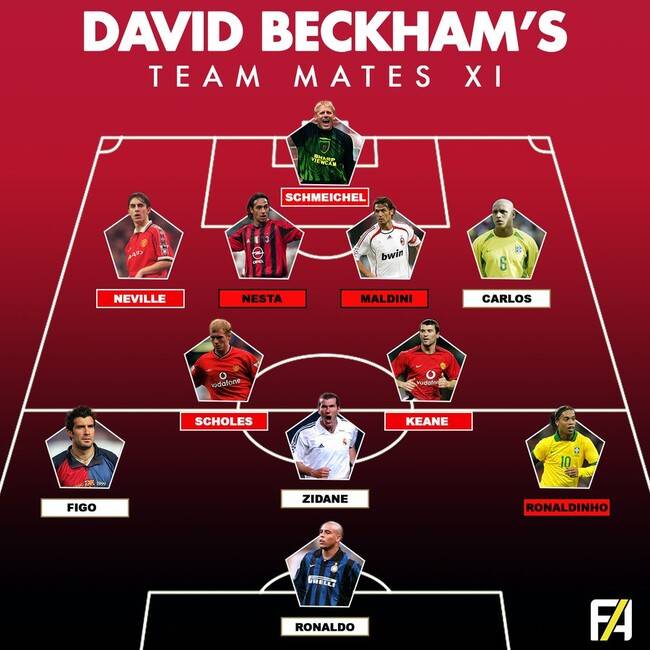 고민을 오래 했을 것 같다. 베컴은 맨체스터 유나이티드, 레알 마드리드, AC 밀란, 파리 생제르맹(PSG) 등 세계 각지의 빅클럽들에서 선수 생활을 했다. 그만큼 함께한 선수들의 명성도 대단했다.