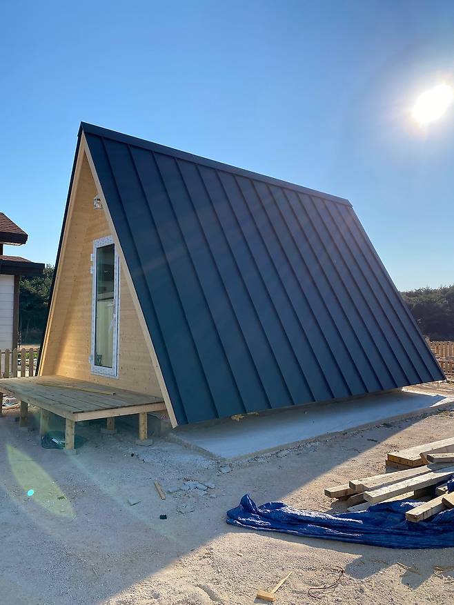보시다시피 제 작업실의 외관은 삼각형 모양이에요. 오두막 느낌도 나고, 어릴 때 상상했던 집에 실제로 들어와있는 것 같은 기분이 들어서 참 신기하고 좋아요.