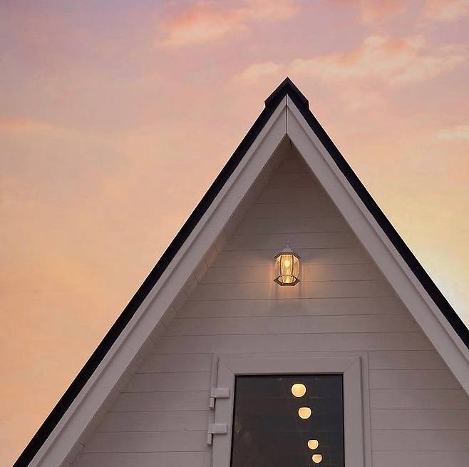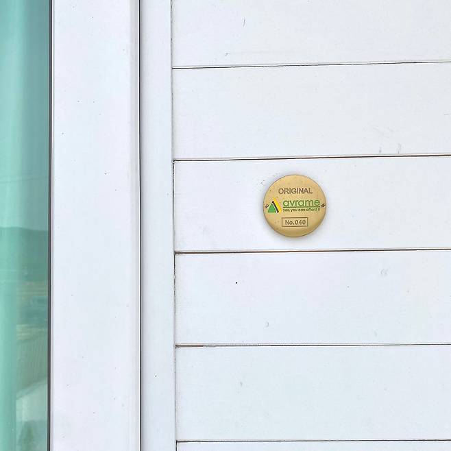 사실 저희 집은 세모 집만 전문적으로 시공하는 세계적인 브랜드에서 DIY 키트를 통해 제작하였는데요. 제 작업실은 전 세계에서 40번째로 지어진 공간이고, 기념 메달도 작업실 현관에 부착되어 있습니다!