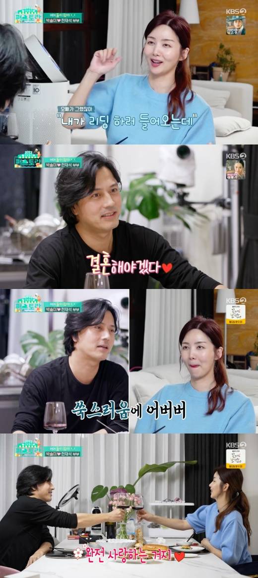 그러자 한재석은 “아니야. 우리 그래가지고 이렇게 된 거다”라며 “완전 사랑하는거다”라고 말했고, 이 말을 들은 박솔미는 행복한 웃음을 감추지 못했다.