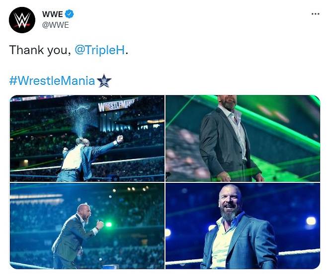 트리플H는 지난 4일(한국시간) 미국 텍사스 주의 알링턴 AT&T 센터에서 열린 레슬매니아38 2일차 오프닝 무대에 모습을 드러내 링 위에 올랐다. 팬들에게 ‘마지막 인사’를 건네기 위해서였다.