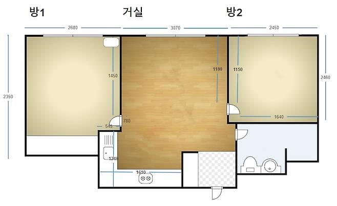2. 현관에서 부엌이 보이지 않을 것 → 현관에 들어서면 거실 창이 보여요.