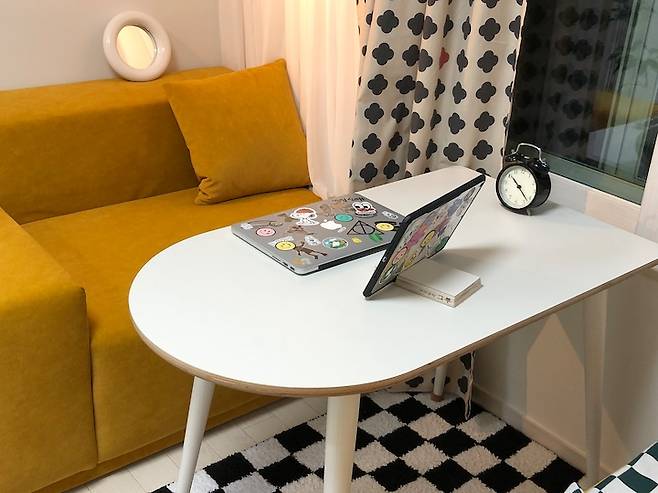 저는 제가 색상을 이렇게 좋아하는지 몰랐어요. 본가의 방에는 그다지 화려한 물건들은 없었거든요. 근데 하나하나 고르다 보니 저는 색상을 굉장히 좋아하는 사람이더라고요. 일단 노란색이라는 큰 바탕색을 두고 거기에 다양한 색상들을 얹어가고 있어요.