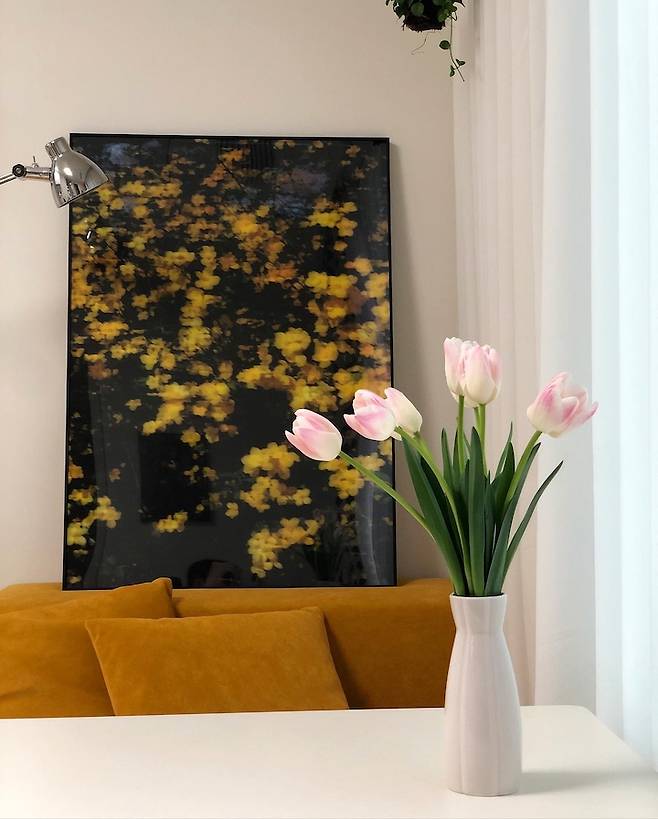 지금은 거실에 임팩트를 좀 줘보려고 액자를 맞추고, 제가 찍은 사진으로 포스터를 제작해서 넣었어요.