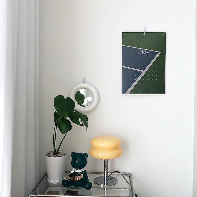 선반 위에는 이것저것 올려놓기도 했는데 이번 달부터는 깔끔하게 유지하고 있어요. 저는 많은 물건을 잘 관리하는 사람은 아니더라고요. 달마다 달력을 뜯으며 뒤에는 어떤 그림이 있을까 두근두근하는 게 즐거워요.