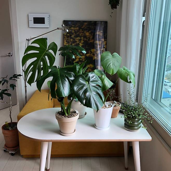 이곳은 동향이라 해가 무척 잘 들어요. 유난히 해가 잘 드는 날에는 집 안에 있는 모든 식물을 모아서 일광욕해주고 있어요🌄