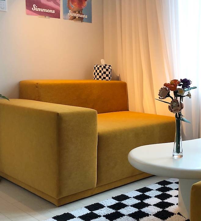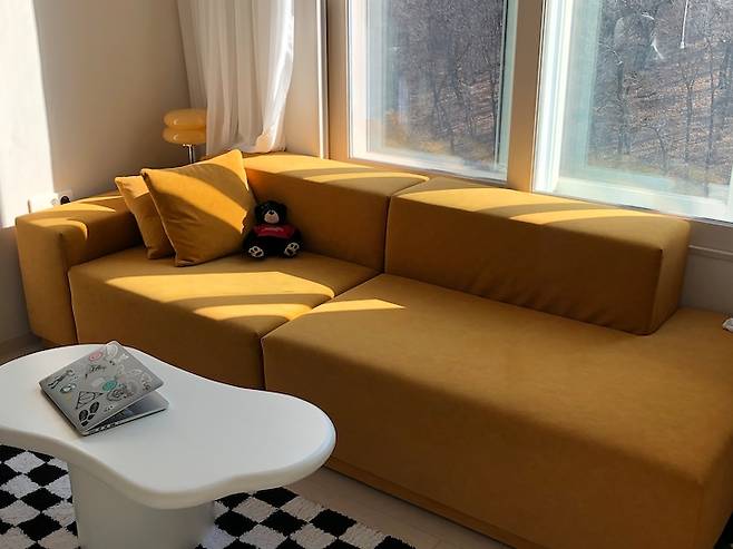 모듈 소파라서 이렇게 기분 전환 삼아 위치를 바꾸기도 편해요. 나중에 소파가 더 필요하면 이 시리즈를 그대로 이어서 만들면 되고요.