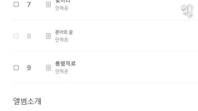 문어의 꿈으로 안예은이라는 가수에 입덕한 초딩들은 다른 곡에도 빠지기 시작했다. 이 초등학교 플레이리스트를 보면 15곡 중 3곡이 예은 님의 노래다. 다른 노래들은 유니크한 사극풍에 가사도 이해하기 쉽지 않을 텐데, 아이들의 습득력이 신기할 따름.