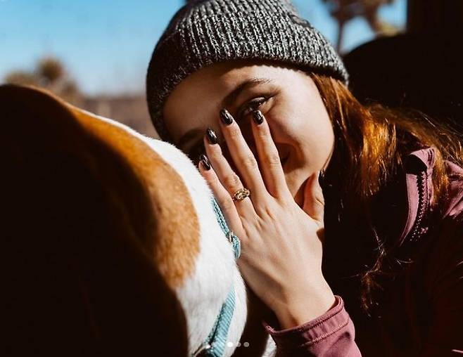 22세의 나이에 다이아몬드 반지를 받고 스티븐 피엣과 미래를 약속한 건데요. 프러포즈를 받고 행복한 미소를 지어보이네요.