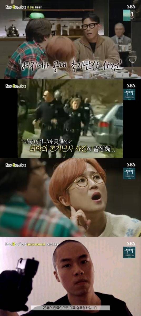 23일 방송된 SBS 교양프로그램 '당신이 혹하는 사이3'에서는 15년 전 미국을 충격에 빠뜨린 '버지니아 공대 총기난사 사건'의 범인 조승희와 관련된 음모론에 대해 이야기를 나눴다.