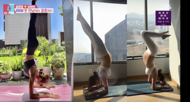 결혼 6년차 부부를 본격적으로 소개했다. 결혼 전 아내 직업을 묻자 서하얀은 항공사 승무원으로 3년 근무했다며 “요가 강사로 전향해 2년 일했다”고 했다. 특히 임신 중에도 물구나무 선 사진에 모두 “대단하다, 임신 중에도 요가를 했다”며 감탄했다.