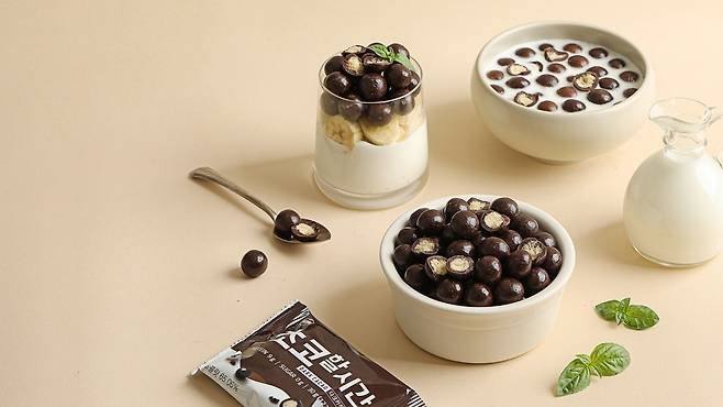 <초코할시간>은 초코볼도 건강하게 드실 수 있도록 만들었어요. 쌀가루를 사용한 크런치볼이라 바삭한 식감은 물론, 설탕 대신 에리스리톨을 사용해 당류가 0g이기 때문이에요.