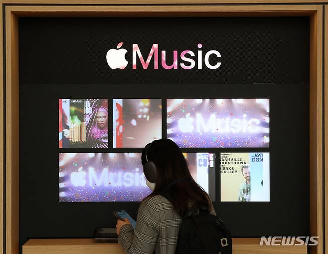 [서울=뉴시스] 백동현 기자 = 애플스토어 명동점 미디어 세션이 열린 7일 오전 서울 중구 애플스토어 명동점에서 기자들이 매장을 둘러보고 있다. 애플스토어 명동점은 오는 9일 정식 오픈할 예정이다. 2022.04.07. livertrent@newsis.com