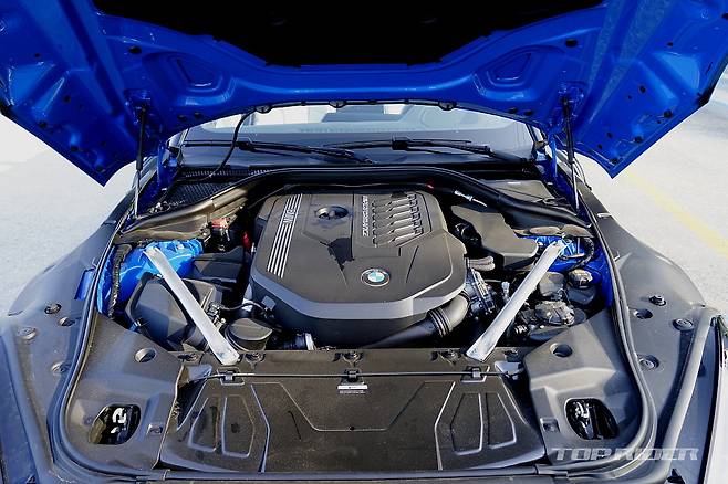 Z4 M40i에는 3.0리터 6기통 터보엔진(B58)과 8단 자동변속기가 조합돼 최고출력 387마력, 최대토크 50.9kgm를 발휘해 초기 340마력 대비 강화됐다. 공차중량 1580kg, 100km/h 정지가속은 4.1초, 최고속도는 250km/h다. 복합연비는 10.2km/ℓ(도심 9.2, 고속 11.9)다.