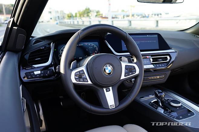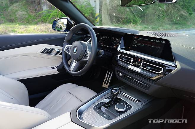 Z4의 시트포지션은 스포츠카답게 아주 낮은 위치까지 지원한다. 두툼하고 감촉이 좋은 스티어링 휠과 부드럽지만 좌우 지지력이 좋은 버네스카 가죽시트는 등쪽 쿠셔닝이 뛰어나다. 지면과 가까운 시트포지션과 시트 바로 뒤에서 들리는 휠하우스 돌 튀는 소리는 반갑다.
