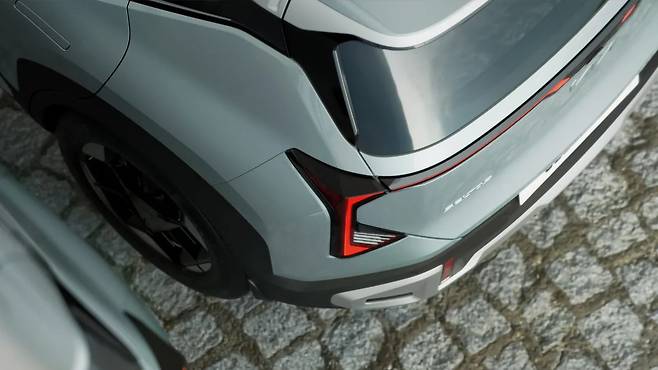 또한 플로팅 루프 스타일, 매끄러운 차체 표면, 숨겨진 플러시 도어 핸들, 실버 범퍼 가니시 등 EV2·EV3 콘셉트에서 보였던 요소들이 다채롭게 반영됐다. 각진 휠아치 몰딩과 블록형 디자인은 소형 SUV 특유의 단단한 느낌을 강조한다.