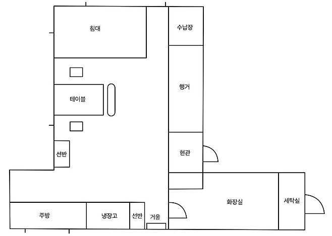 준비 공간에 있는 선반은 옆과 앞의 모습이 약간 달라요.