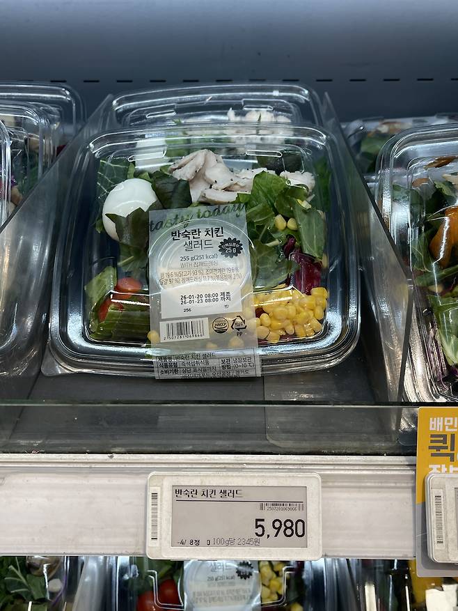 에그마요·스파이시 랜치 같은 소스가 들어가 고소하면서도 매콤한 맛이 특징이라 샐러드 단조로움을 줄여줘요.