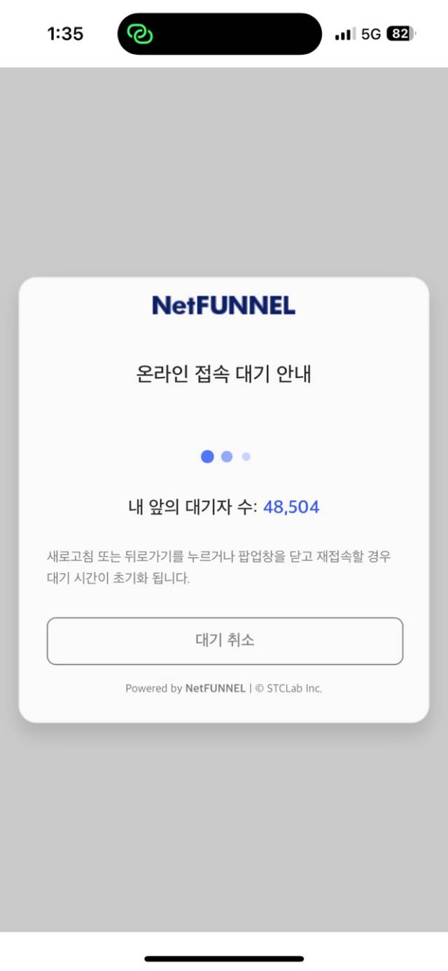 실제 온누리상품권을 사용하기 위해 오후 1시께 디지털온누리 앱에 접속하면 온라인 접속 대기 안내 문구가 뜨면서 5만 명에 가까운 대기자 수가 접속을 위해 대기하고 있었다.