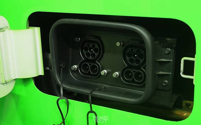 차체 뒤편엔 충전구 두 개를 심었다. 0→80%까지 33.1분 만에 배터리를 채운다. 0→100%까지는 완속 충전만 지원한다(22.1분). 완충까지 걸리는 총 시간은 55.2분. 급속 충전은 배터리 충전기 두 개를 모두 꽂아야 진행할 수 있다.