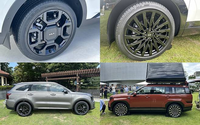 먼저 두 차의 가장 엔트리 트림의 사양을 비교했다. 우선 공통적인 부분은 두 차 모두 기본 트림의 사양이 전보다 풍성하다는 점이다. 12.3인치 내비게이션, 1열 통풍 및 2열 열선, 내비게이션 기반 스마트크루즈 컨트롤 대부분의 장비가 기본으로 들어갔기 때문에, 기본 트림만 사도 크게 아쉽지 않다. 가격은 싼타페가 3,546만 원, 쏘렌토가 3,506만 원으로 40만 원의 차이가 있다.