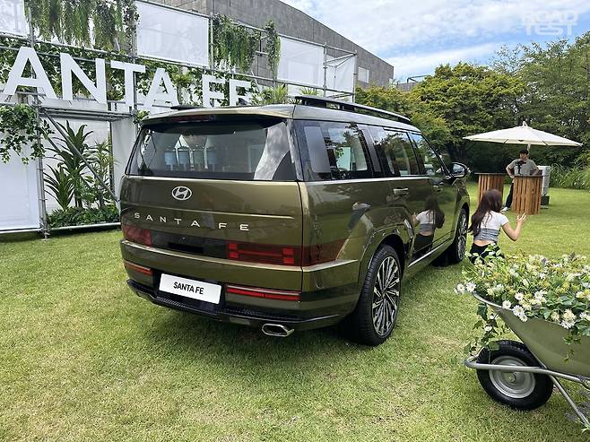 5세대 싼타페는 선대 모델의 디자인 테마와 완전히 다르다. 과거 갤로퍼와 테라칸의 헤리티지를 융합시켰다. 네모반듯한 정통 SUV 스타일을 앞세운다. 대신 Cd 0.29의 낮은 공기저항계수를 실현해 연비와 주행성능을 향상시켰다. 거대한 트렁크 입구와 725L에 달하는 적재 기본용량, 루프탑 텐트와 루프박스 등 다양한 라이프스타일 액세서리를 함께 선보인 점도 눈에 띈다.