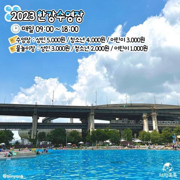 오늘은 2023 한강 야외수영장 개장 정보와 각 한강 수영장, 물놀이장의 특징까지 정리해드렸는데요. 가족 단위 나들이객은 저렴한 가격에 깨끗한 야외 수영장을 이용할 수 있어 이번 여름 물놀이 장소로 추천합니다.