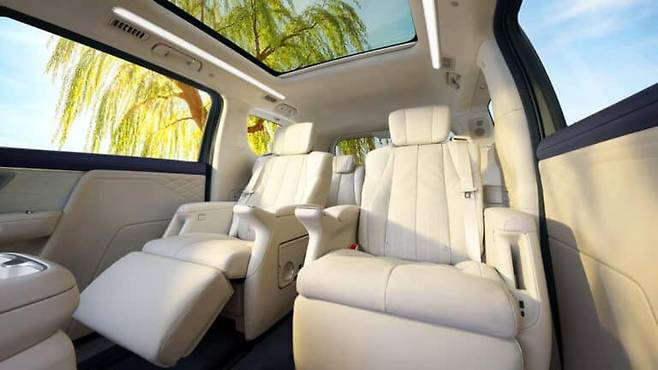 실내는 단순한 이동 수단을 넘어 움직이는 라운지 공간으로 재탄생했습니다. 2열에는 비행기 일등석을 연상시키는 체즈 롱 무중력 시트가 적용되어 최상의 편안함을 제공하며, 천장에는 21인치 4K 고해상도 스크린이 설치되어 이동 중에도 고화질 콘텐츠를 즐길 수 있습니다.