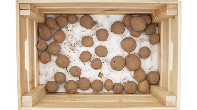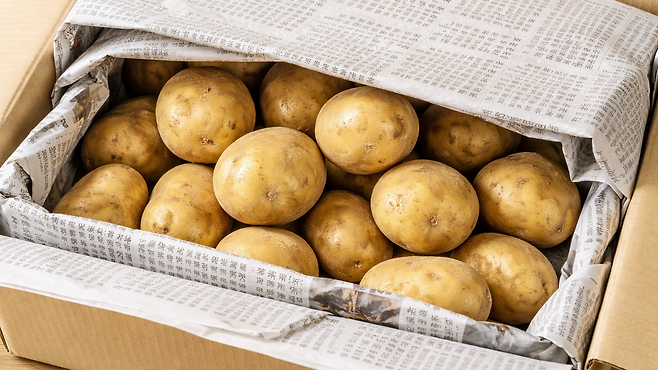 박스에 감자를 담은 뒤 신문지로 덮어두면 수분이 과도하게 증발하는 것을 막으면서도 차가운 공기를 차단할 수 있다. 여기에 사과 한 알을 함께 넣어두면, 사과에서 나오는 에틸렌 가스가 감자의 싹이 트는 것을 억제해 신선도 유지에 도움이 된다.