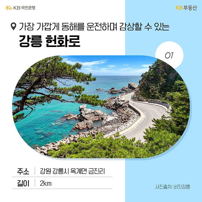 국내에는 차로 달리면서 아름다운 절경을 감상할 수 있는 유명한 드라이브 코스들이 있습니다. 아직 가볼 기회가 없었다면 이번 설 연휴 고향 가는 길이나 오는 길에 방문해 보시는 것은 어떨까요? KB부동산이 찾은 탁 트인 바다와 호수 등을 감상하며 드라이브하기 좋은 아름다운 길 5곳. 지금부터 함께 달려 보시죠.