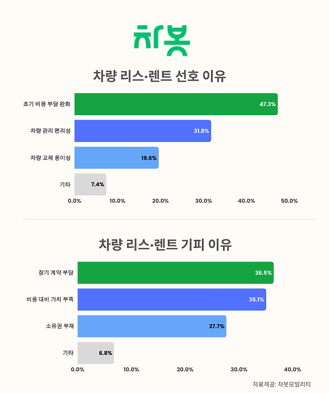 차봇모빌리티는 "초기 비용 부담과 차량 관리의 번거로움을 동시에 해결하는 리스·렌트가 새로운 차량 구매 트렌드로 자리잡고 있다"고 분석했다.