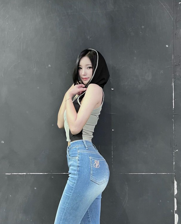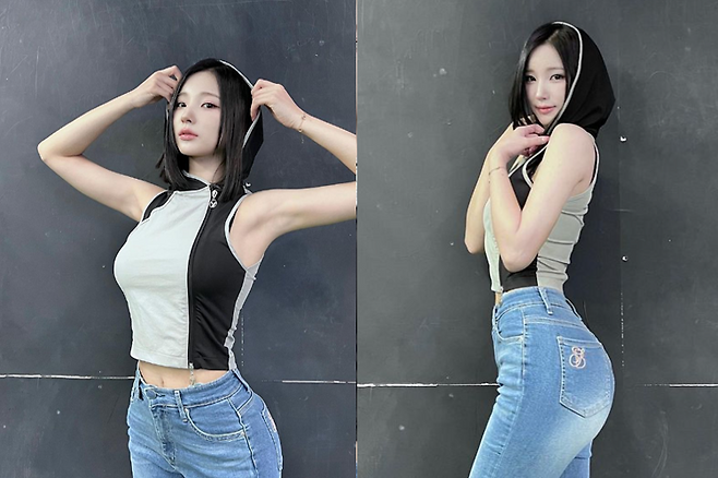 김소희는 후드가 달린 집업 크롭티에 청바지를 매치한 데님패션도 선보였다.