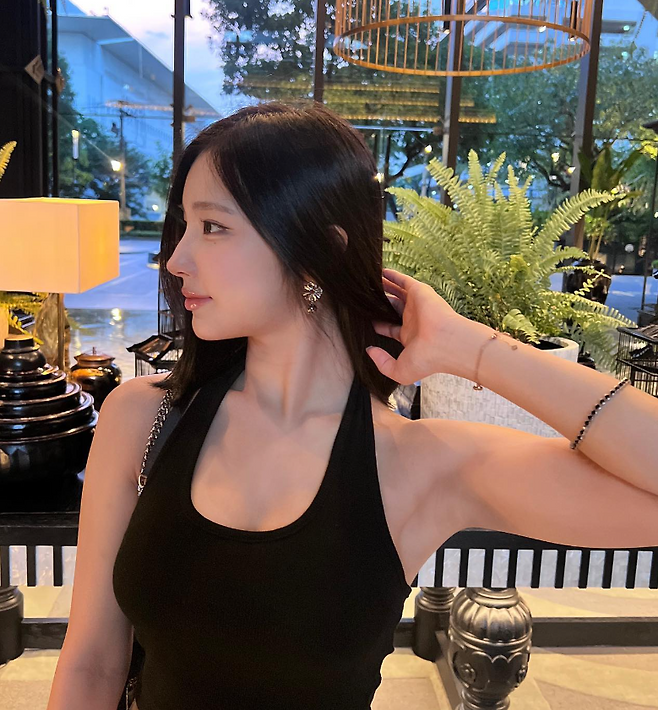 김소희는 블랙 크롭티에 주얼리로 세련되고 고급스러운 룩을 완성했다.