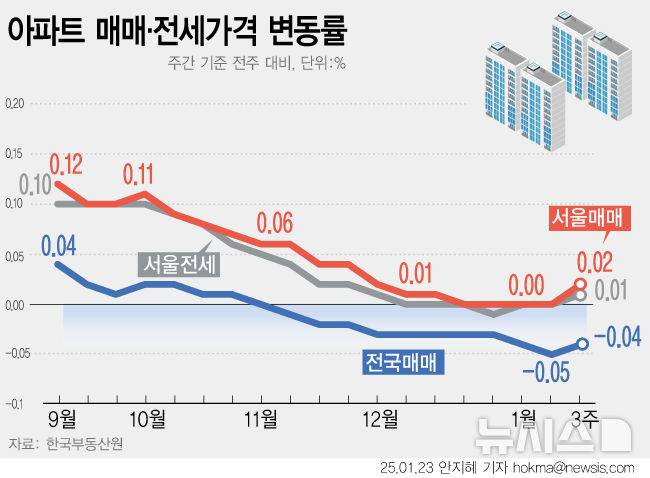 서울 아파트값 보합 멈추고 0.02%↓