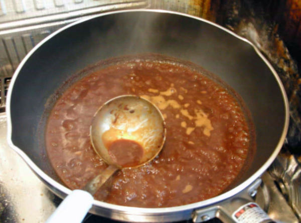 팬에 식용유를 두르고 양념장을 바로 넣는 방식이 이 요리의 특징이다. 보통 조림은 물부터 넣지만, 이 레시피는 양념을 먼저 볶듯이 끓인다. 여기에 물을 소량만 더해준다.