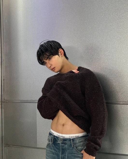 [SCin스타] '빨래판 복근'도 외모 못잖네…차은우 수줍은 복근공개