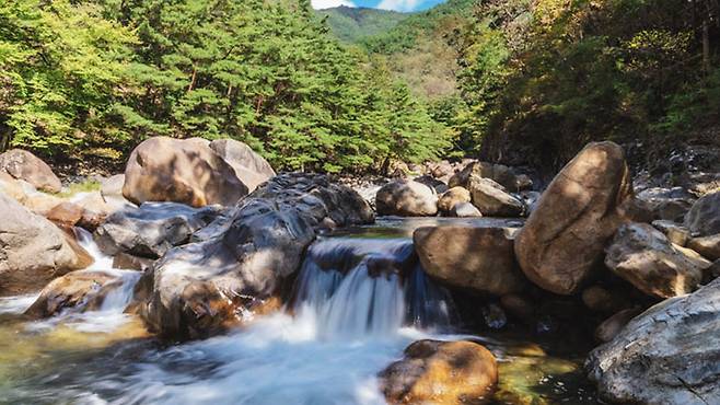 탐방로의 주인공은 단연 대원사계곡이다. 지리산 최고봉인 천왕봉에서 시작된 물줄기가 12km의 여정을 거쳐 내려와 만든 계곡은 본래 ‘유평계곡’으로 불렸지만, 길목에 자리한 사찰의 이름을 따라 오늘날엔 ‘대원사계곡’으로 더 잘 알려져 있다.