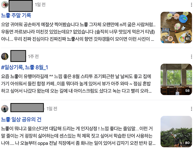 ‘느좋’처럼 일상 글에 쓰기도 좋다.