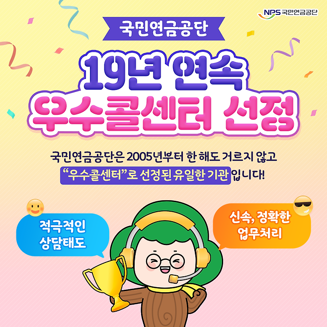 ▷ 국민연금공단 ‘1355 고객센터’ 19년 연속 '우수콜센터'로 선정