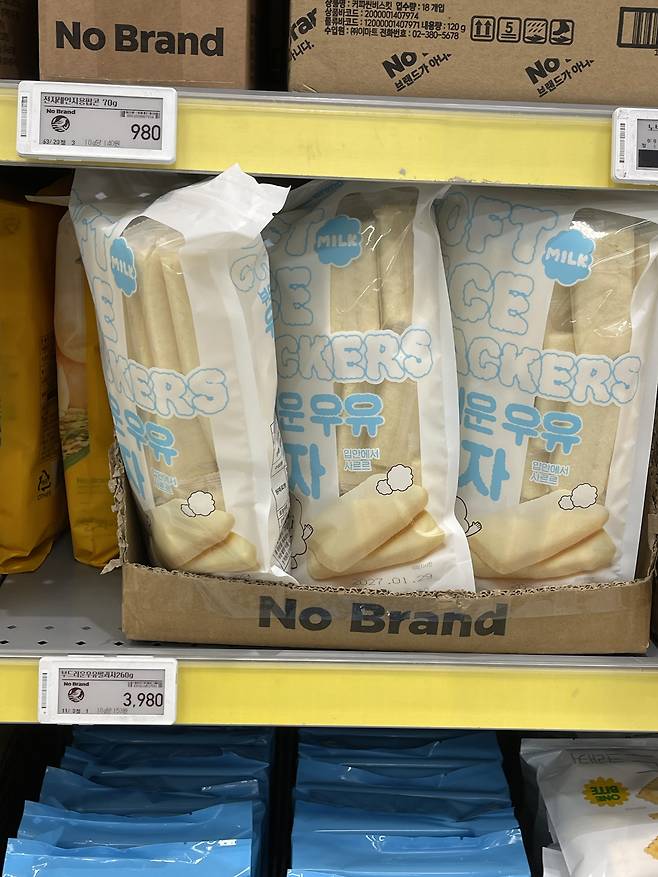 우유의 부드러운 달콤함이 느껴지는 노브랜드 가성비 쌀과자에요.
