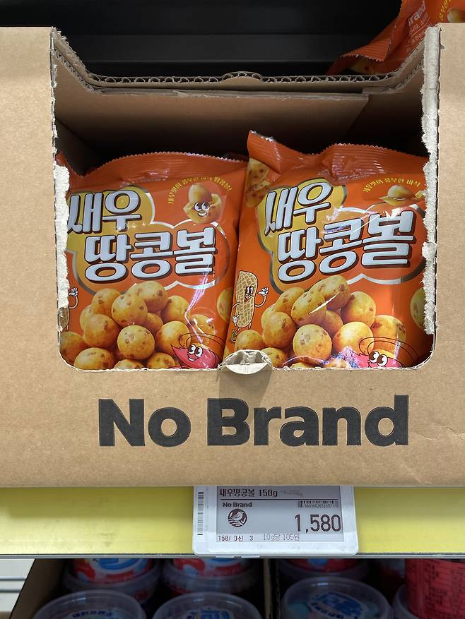 노브랜드 새우땅콩볼은 고소짭조름한 맛을 내세우는 타입이라, 가볍게 집어먹기 좋은 스낵 느낌이에요.